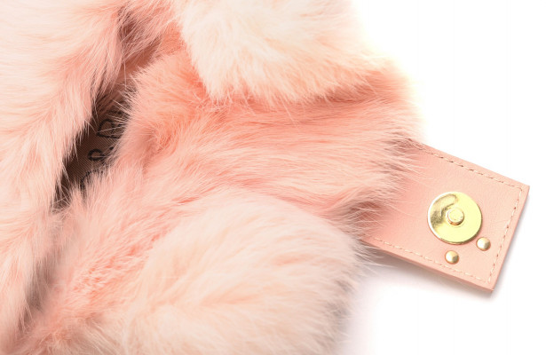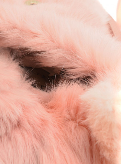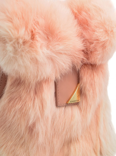 Cango&Rinaldi púder rózsaszín színű minőségi olasz bőrből és valódi szőrméből készült kis méretű táska. Mágneses záródással, belseje egyterű, fix pánttal, elején arany színű márkajelzett fém kellékkel díszítve.