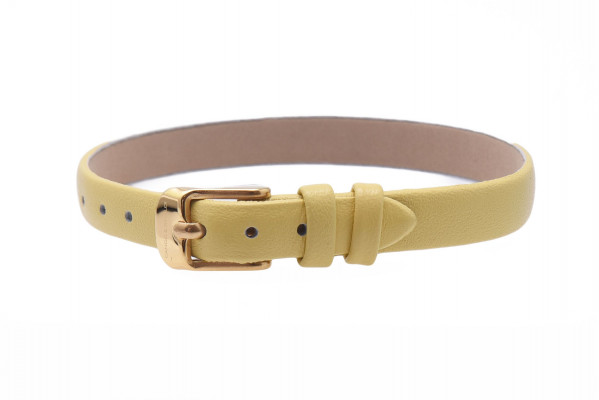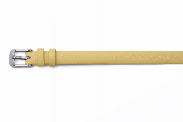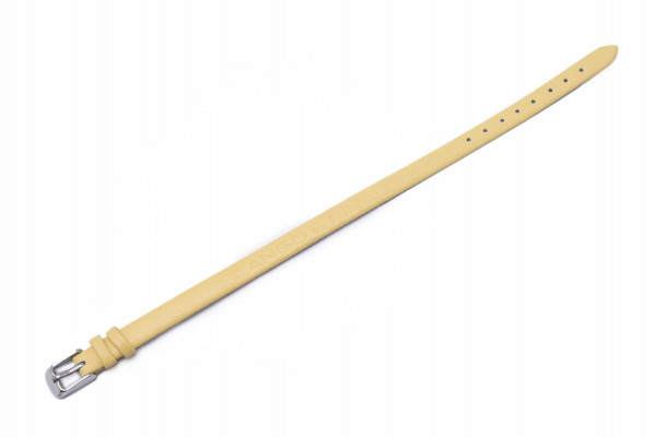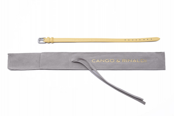 Cango&Rinaldi sárga színű olasz bőr pánt a - Charm Kollekcióból - mely nikkel színű fémkellékkel készült. Ez a karkötő egyedi és személyes stílust kölcsönöz viselőjének. A karkötő lehetővé teszi, hogy a viselő a charmokkal egyedi emlékeket és történeteket osszon meg.
