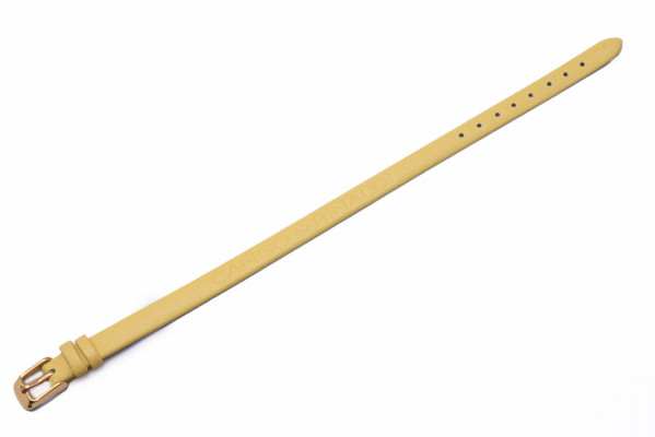 Cango&Rinaldi sárga színű olasz bőr pánt a - Charm Kollekcióból - mely arany színű fémkellékkel készült. Ez a karkötő egyedi és személyes stílust kölcsönöz viselőjének. A karkötő lehetővé teszi, hogy a viselő a charmokkal egyedi emlékeket és történeteket osszon meg.