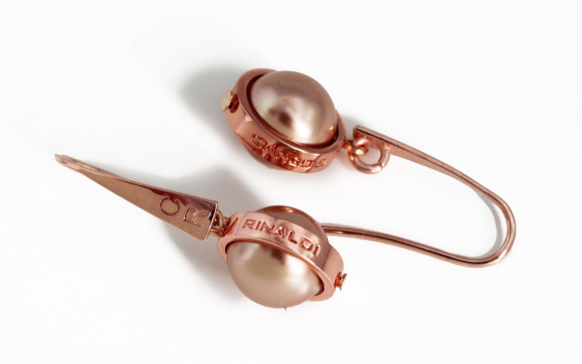 PLAN01F cikkszámú Cango&Rinaldi akasztós fazonú fülbevaló. Rose gold színű gyűrűben rose gold színű gyönggyel; a foglalatban Cango&Rinaldi, - akasztójában CR gravírozással; jelölve ezzel a brand eredetiségét és minőségét!