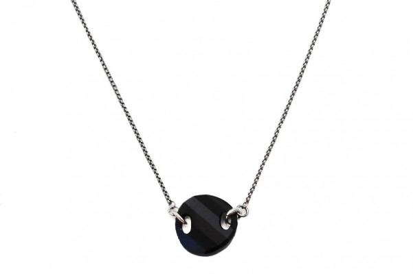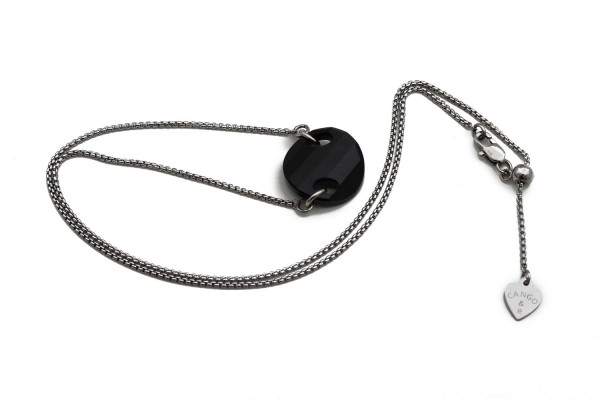 PLAN06NY-es cikkszámú Cango&Rinaldi - PLANET COLLECTION - nyaklánc ezüst színű láncból. A nyakláncon egy különleges csiszolású 18*18 mm-es fekete (jet) színű kristály található. A nyaklánc teljes hossza 480 mm mely egy kapoccsal összekapcsolható és egy Cango&R márkajelzéssel ellátott charm-al díszített csúszó fémzárral bármilyen méretben állítható. A charm-on lévő Cango&R feliratos gravírozás jelöli a brand eredetiséget és minőségét.