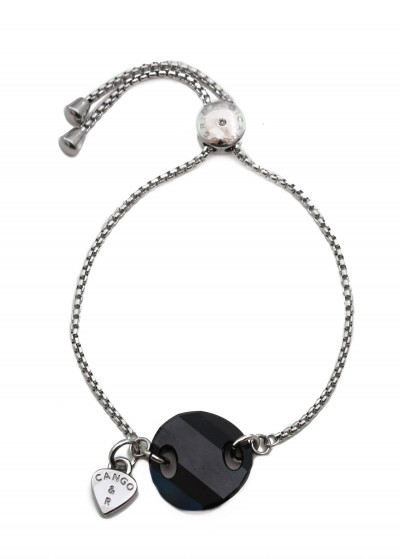 PLAN07K-es cikkszámú Cango&Rinaldi - PLANET COLLECTION - karkötő ezüst színű láncból. A karkötőn egy különleges csiszolású 18*18 mm-es fekete (jet) színű kristály található egy Cango&R feilratos charm-al díszítve. A karlánc márkajelzett fém zárral 220 mm-ig bármilyen méretben állítható. A charm-on lévő Cango&R feliratos gravírozás jelöli a brand eredetiséget és minőségét.