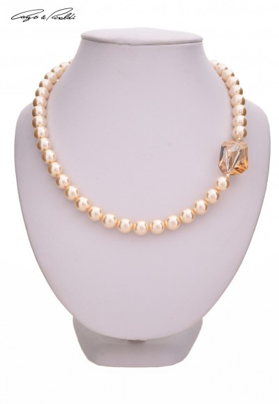 1748-as cikkszámú Cango&Rinaldi gyöngy nyaklánc modell. Arany (Light Gold) színű gyöngy kombinációjából készült egy soros Cango&Rinaldi nyaklánc, arany színű fém kellékkel, és mágnes zárral. A nyakláncon egy arany színű különleges csiszolású 20*35 mm-es kristály található.