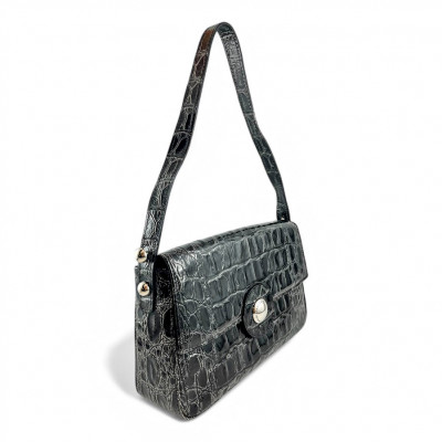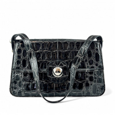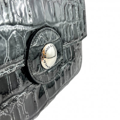Cango&Rinaldi minőségi krokodil mintás olasz bőrből készült táska fekete színben, mágneses záródással. Márkajelzett textillel bélelt két terű belsejében egy cipzáras zsebbel és két rekesszel, elején márkajelzett fém kellékkel.