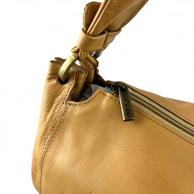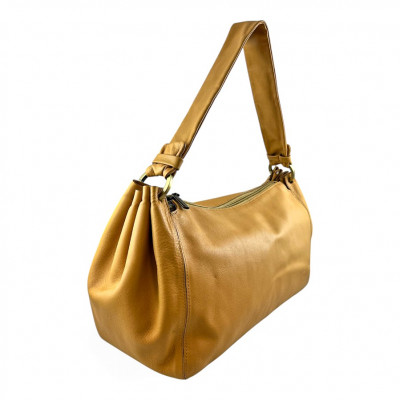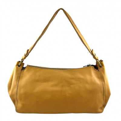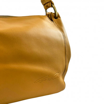 Cango&Rinaldi minőségi olasz bőrből készült táska, mustársárga színben, cipzáras záródással, egyterű belsejében további cipzáras zsebbel és rekeszekkel, óarany színű fémkellékekkel, elején nyomott márkajelzéssel.