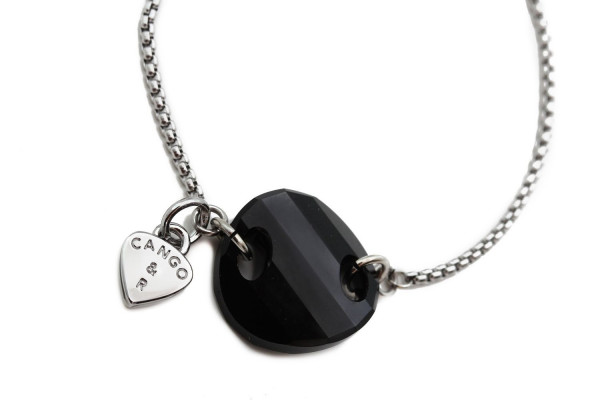 PLAN07K-es cikkszámú Cango&Rinaldi - PLANET COLLECTION - karkötő ezüst színű láncból. A karkötőn egy különleges csiszolású 18*18 mm-es fekete (jet) színű kristály található egy Cango&R feilratos charm-al díszítve. A karlánc márkajelzett fém zárral 220 mm-ig bármilyen méretben állítható. A charm-on lévő Cango&R feliratos gravírozás jelöli a brand eredetiséget és minőségét.