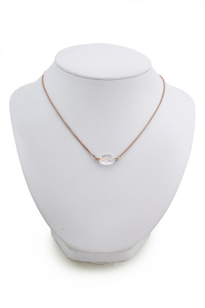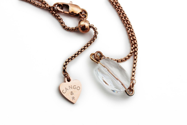 PLAN07NY-es cikkszámú Cango&Rinaldi - PLANET COLLECTION - nyaklánc rose gold színű láncból. A nyakláncon egy különleges csiszolású 10*15 mm-es fehér színű kristály található. A nyaklánc teljes hossza 480 mm mely egy kapoccsal összekapcsolható és egy Cango&R márkajelzéssel ellátott charm-al díszített csúszó fémzárral bármilyen méretben állítható. A charm-on lévő Cango&R feliratos gravírozás jelöli a brand eredetiséget és minőségét.