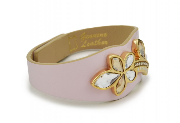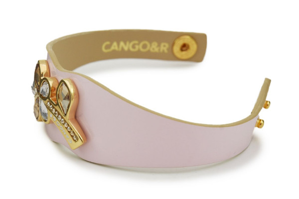 SGK05A cikkszámmal ellátott Cango&Rinaldi karkötő a Secret Garden kollekcióból. Rose színű lakk minőségi olasz bőrből készült, arany színű fémkellékekkel, patentos záródással. A karkötő közepén egy arany színű fém foglalatban arany és fehér színű, változó méretű és formájú kristályokkal kirakott virág minta díszíti. A foglalatban arany színű mesh kristályok felett Cango&R felirat jelöli a brand eredetiségét és minőségét!